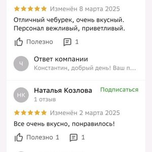 Первым скрином даже выложу накрутку отзывов от ноунеймов в 2гис. Накрутку, которая белыми нитками шита. Прямо все поразились великолепию чебуречной, что по 1 отзыву все написали повально. Более того, ради этого специально зарегистрировались в 2 gis... и более не заходили как авторы и не написали ни о чём, ну...