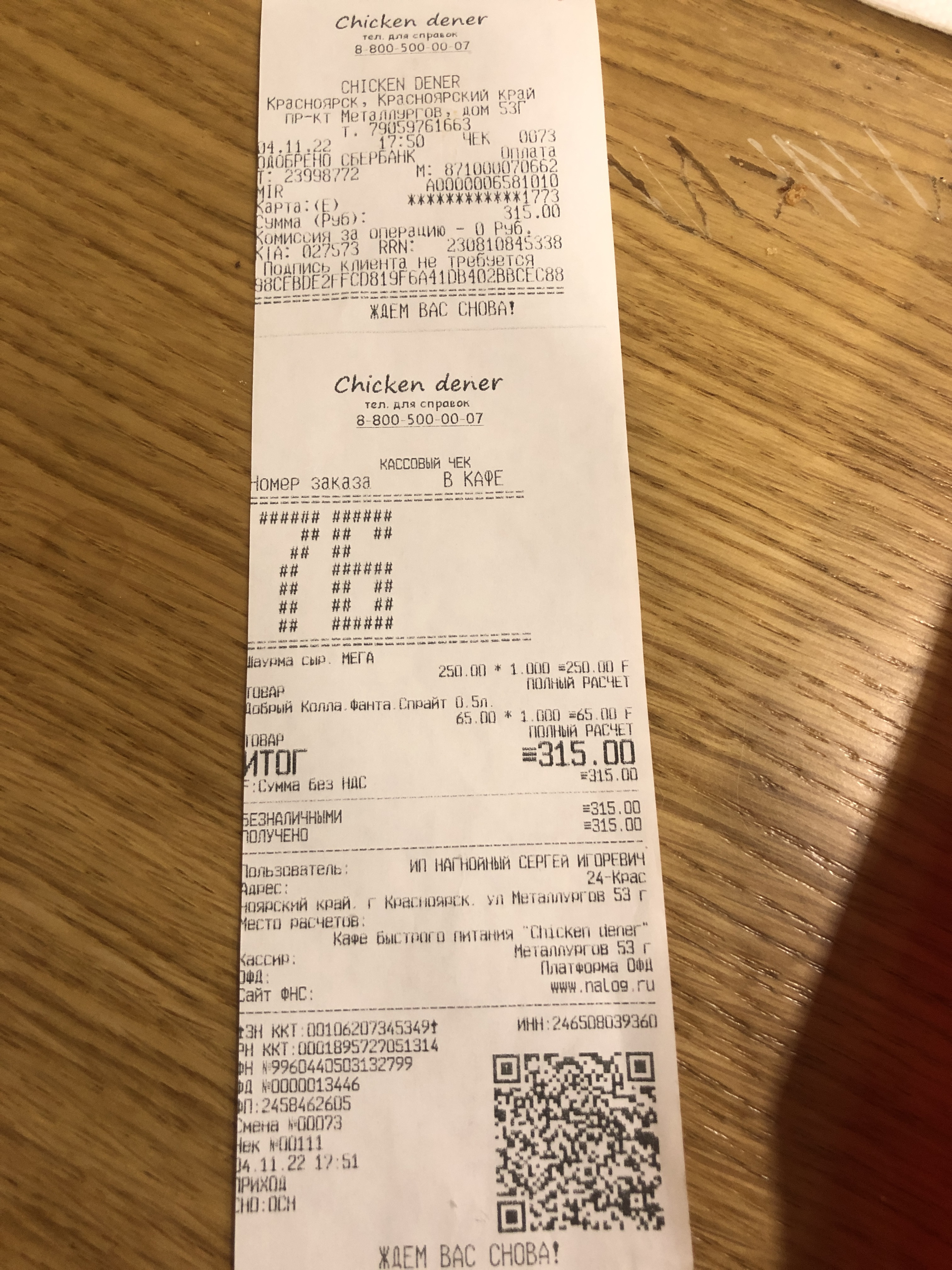 Добрый день. Согласно записи камер видеонаблюдения, мы слышим, как сотрудник Вам поясняет, что ценник соответствует тем напиткам, которые находятся выше. Вы съели полностью шаурму, к сотрудникам с жалобой не обратились. Мы обязательно проведем разъяснительную беседу с персоналом о выявленных нарушениях.